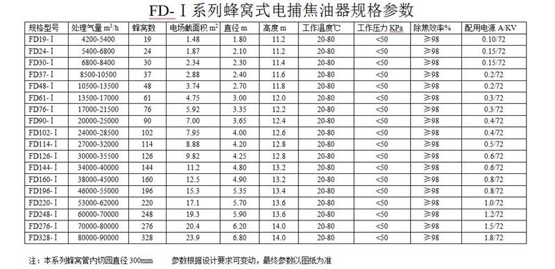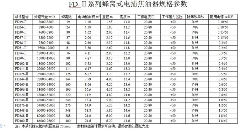 蜂窩式電捕焦油器殼體采用圓筒式結(jié)構(gòu),內(nèi)件沉淀極所采用結(jié)構(gòu)形式類似蜂窩式,蜂窩式的結(jié)構(gòu)是將通道截面為正六邊形。兩個相鄰正六邊形共用一條邊,即靠中間的正六邊形的六條邊均被包圍它的六個正六邊形所共用。用2-3mm的鋼板制成的蜂窩板即可滿足工藝和機械強度的要求。設備殼體由筒體、器頂封頭與器底斜底組合而成。整個除焦器分為上、中、下3 段, 上、中部為高壓靜電場, 下部為集焦油室。浸漬罐煙氣由下端側(cè)面進入, 凈化后的潔凈氣體由上端頂部由風機排出, 除塵器底部留有人孔維修方便。下端進氣口設有2 層多孔板型氣流分布板, 使氣體在電場中均勻分布, 中部為高4-5m 的高壓靜電場。 其原理即在金屬導線與金屬管壁(沉淀極板)間施加高壓直流電,使陰陽極之間形成電暈區(qū)。當含焦油霧滴等雜質(zhì)的氣體通過該電場時,吸附了負離子和電子雜質(zhì)在電場庫倫力的作用下,移動到沉淀極后釋放出所帶電荷,并吸附于沉淀極上,當吸附于沉淀極上的雜質(zhì)量增加到大于其附著力時,會自動向下流并從電捕焦油器底部排出,從而達到凈化氣體的目的。蜂窩式電捕焦油器與其他焦油器相比,由于蜂窩式電捕焦油器具有結(jié)構(gòu)緊湊合理、沒有電場空穴,具有筒徑小,占地少,有效截面(氣凈化工作面)大,氣體處理量大成本低,電耗小,收焦油量大且油質(zhì)優(yōu)良,凈化效率高,處理后各種污染物可達標排放的優(yōu)點。達到的技術(shù)指標,可明顯改善操作環(huán)境。